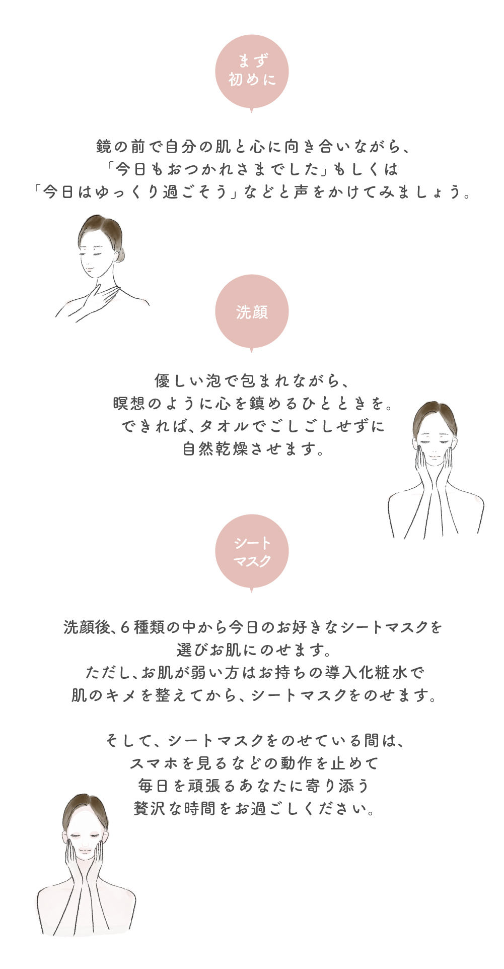 ほんのひとときでも立ち止まり、深く息をつき、肌と心を整える時間を。