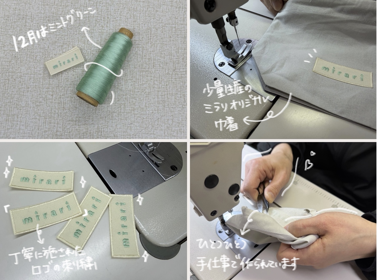 そして、こちらの巾着は、ひとつひとつ手しごとで仕上げた少量生産のミラリオリジナルとなります。同じ配色の再販はなく、その月だけの“一点もの”としてお届けしています。