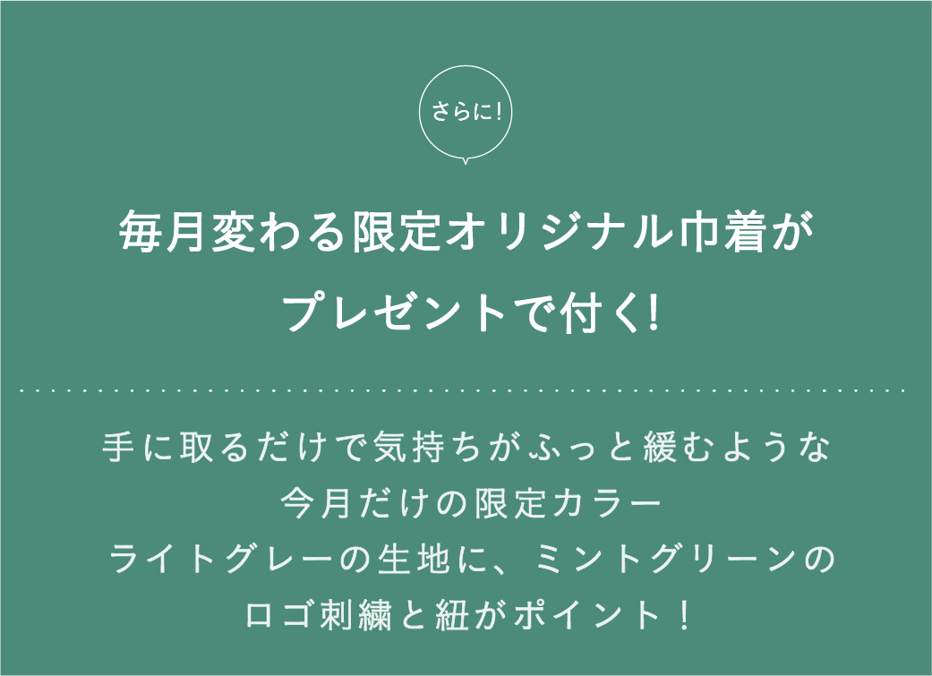 - 毎月変わる「ミラリオリジナル巾着」がプレゼントでつく!
