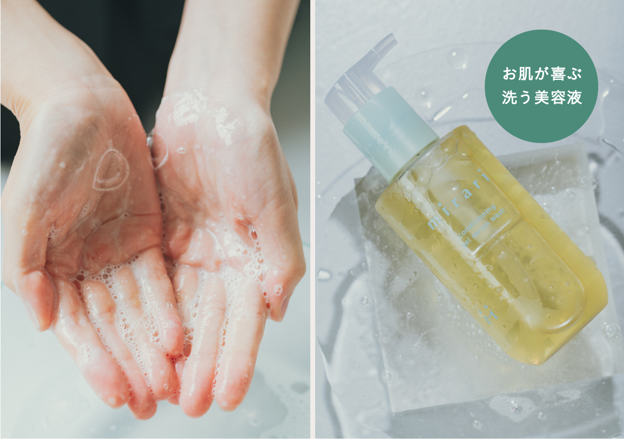 たっぷりの美容液洗顔でやさしく肌を清めたあと、