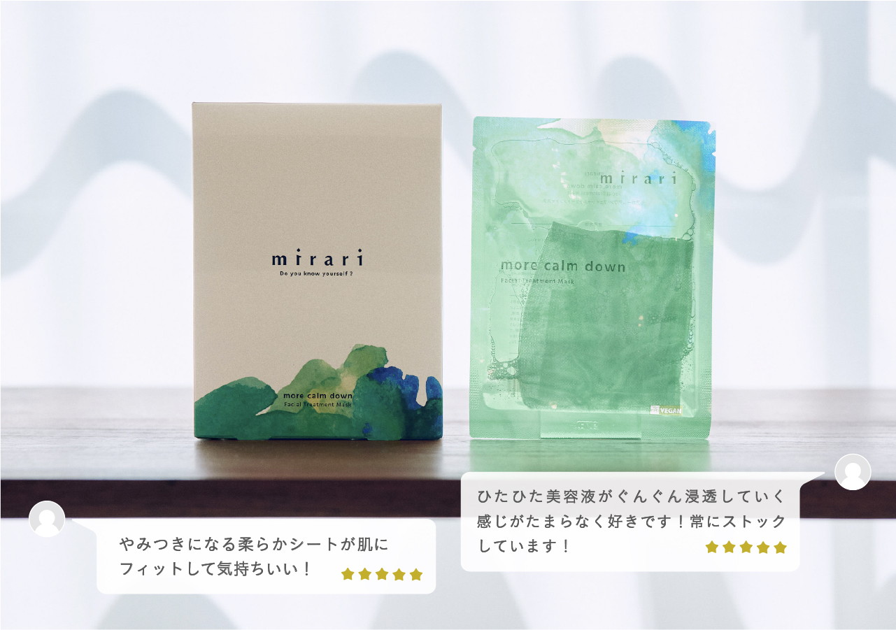 肌だけでなく心も一緒に落ち着きが欲しくありませんか?ツボクサやドクダミなど、肌を穏やかに整える天然植物由来成分を凝縮させ、肌の落ち着きを取り戻す効果を持つ「more calm down」フェイシャルトリートメントマスク。