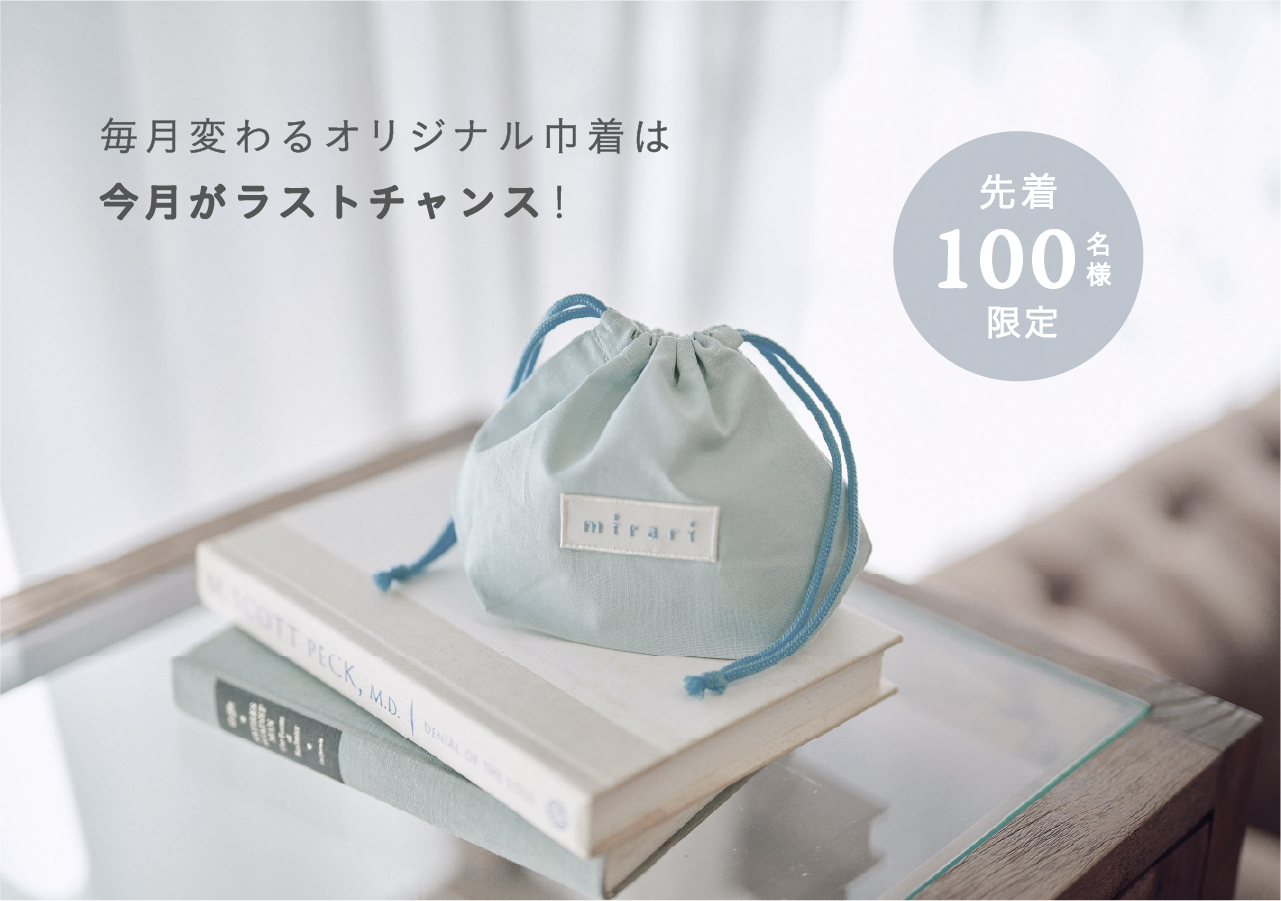 - 毎月変わる「ミラリオリジナル巾着」がプレゼントでつく!