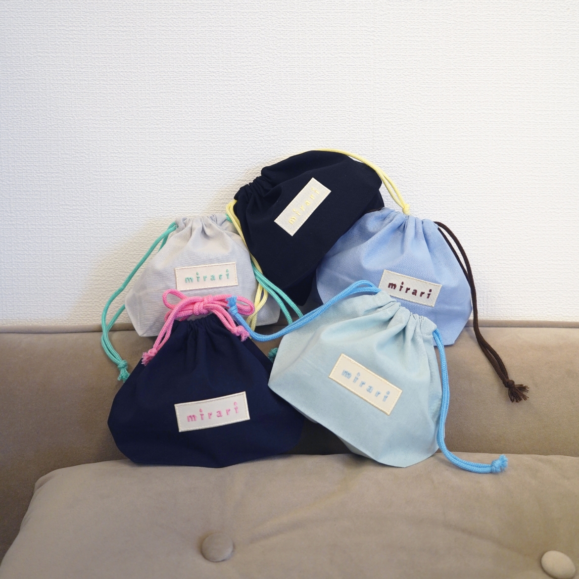 5ヶ月間にわたってお届けしてまいりましたミラリのオリジナル巾着は、刺繍入りのロゴや紐の仕立てまで、メンバーと一緒に手作業で作ってきました。手仕事にこだわったのは、お客様が手に取ったときに思わずときめいていただけるような可愛さにこだわりたかったからでもあります。ただし、私を含め、ミラリのメンバーとも真剣に話し合った結果、5つの色の組み合わせがこの企画として最もベストな形だという考えに至りました。それ以上続けてしまうと、どこか無理に広げているように感じる…そんなことを思い、このタイミングで一区切りをつけることにいたしました。ご理解いただけますと幸いです。